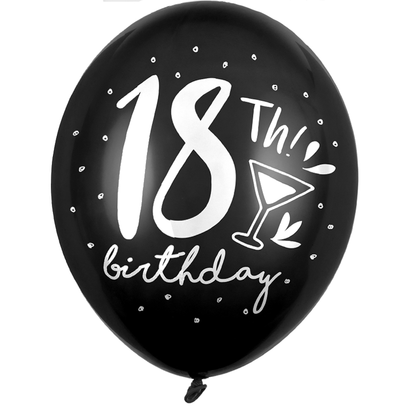 Balon z helem: 18th! Birthday, czarny, 30 cm