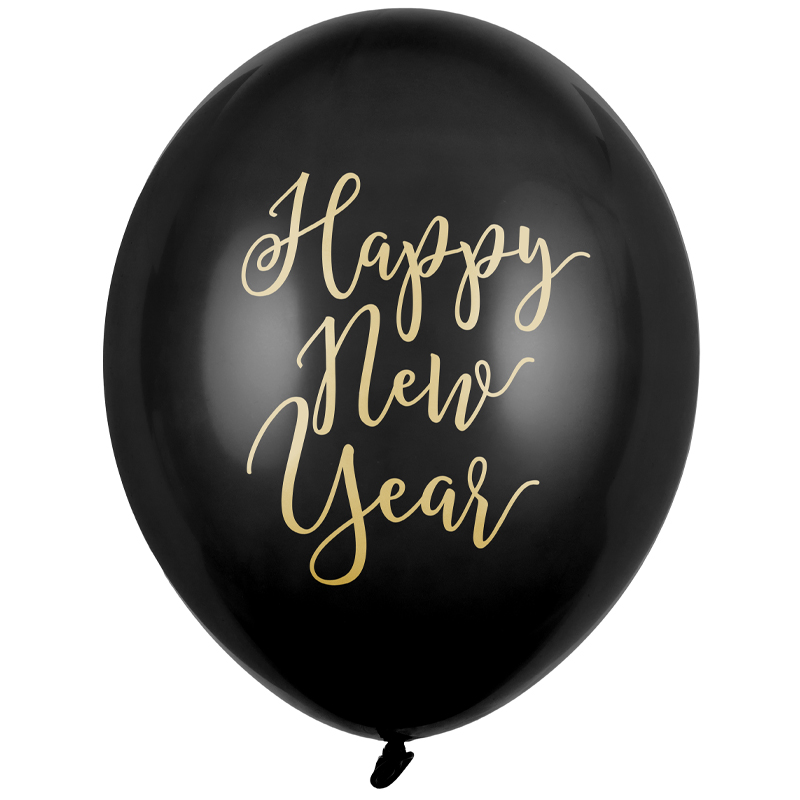 Balon z helem: Happy New Year, Pastel Black, 30 cm