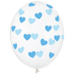 Balon gumowy – Przeźroczysty w niebieskie serduszka (1 szt.)