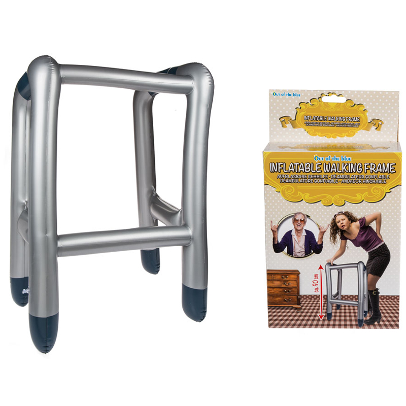 Zabawny pomysł na prezent dla jubilata, który wiecznie narzeka na lecące lata lub łamanie w kościach – nadmuchiwany balkonik / chodzik. Po napompowaniu ma wymiary 90 x 90 x 90 cm. Może służyć jako zabawny gadżet imprezowy, ale też jako użyteczna poręcz którą można się podeprzeć. Całość zapakowana w pudełeczko z zawieszką.