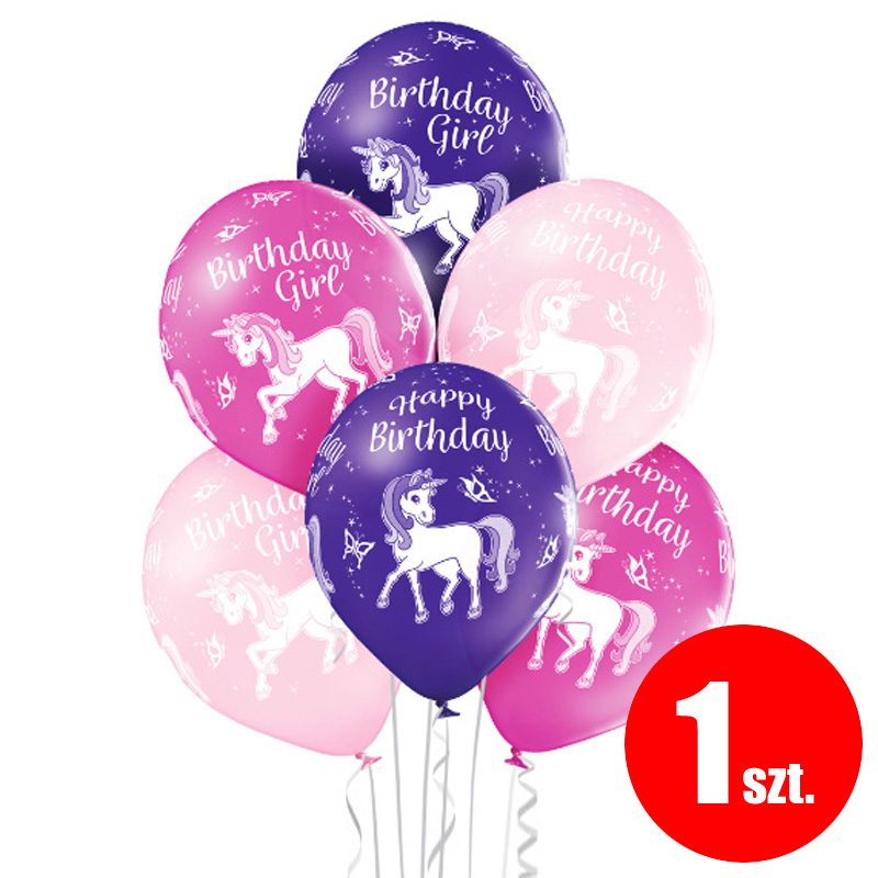 Balon bez helu: Jednorożce, Happy Birthday, mix, 30 cm (1szt.)