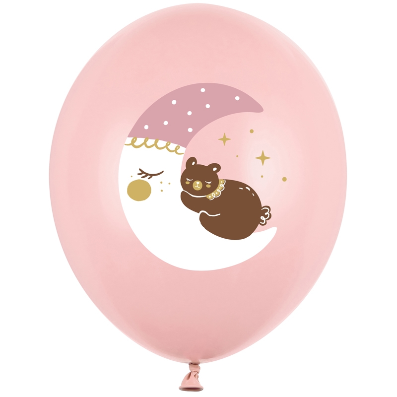 Balon bez helu: Miś na księżycu, pink, 30 cm