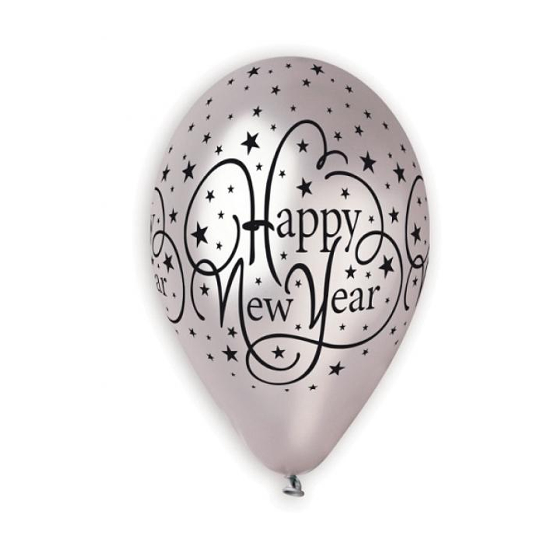 Balon bez helu: Srebrny, Happy New Year, 30 cm