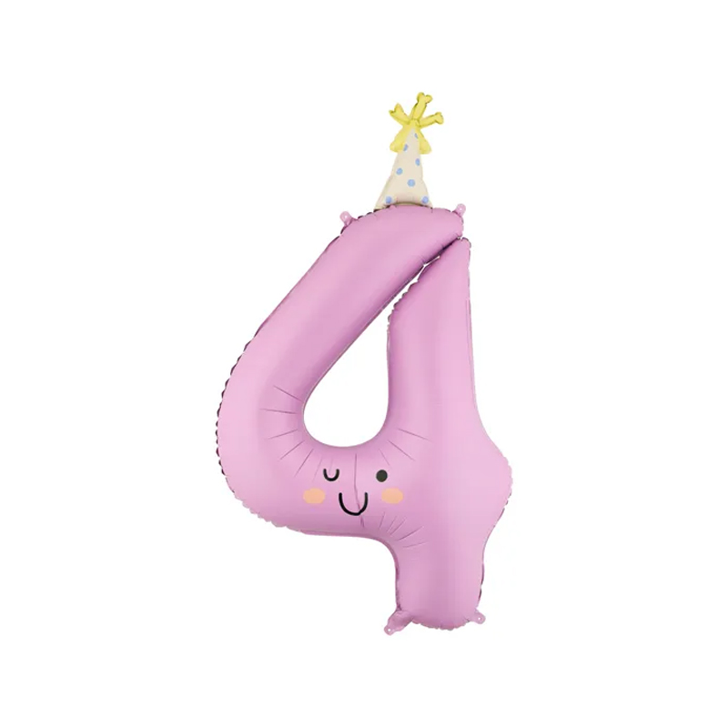 Balon z helem: Cyfra 4 – 86cm, czapeczka
