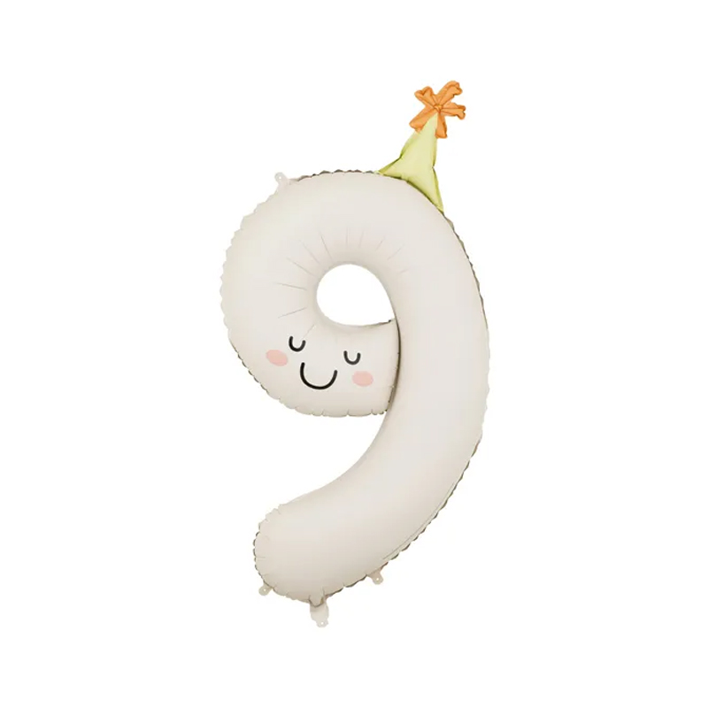 Balon z helem: Cyfra 9 – 86cm, czapeczka
