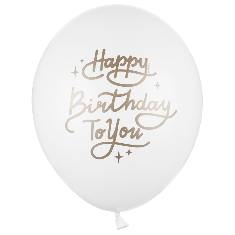 Balon z helem: Happy Birthday, biały, 30 cm