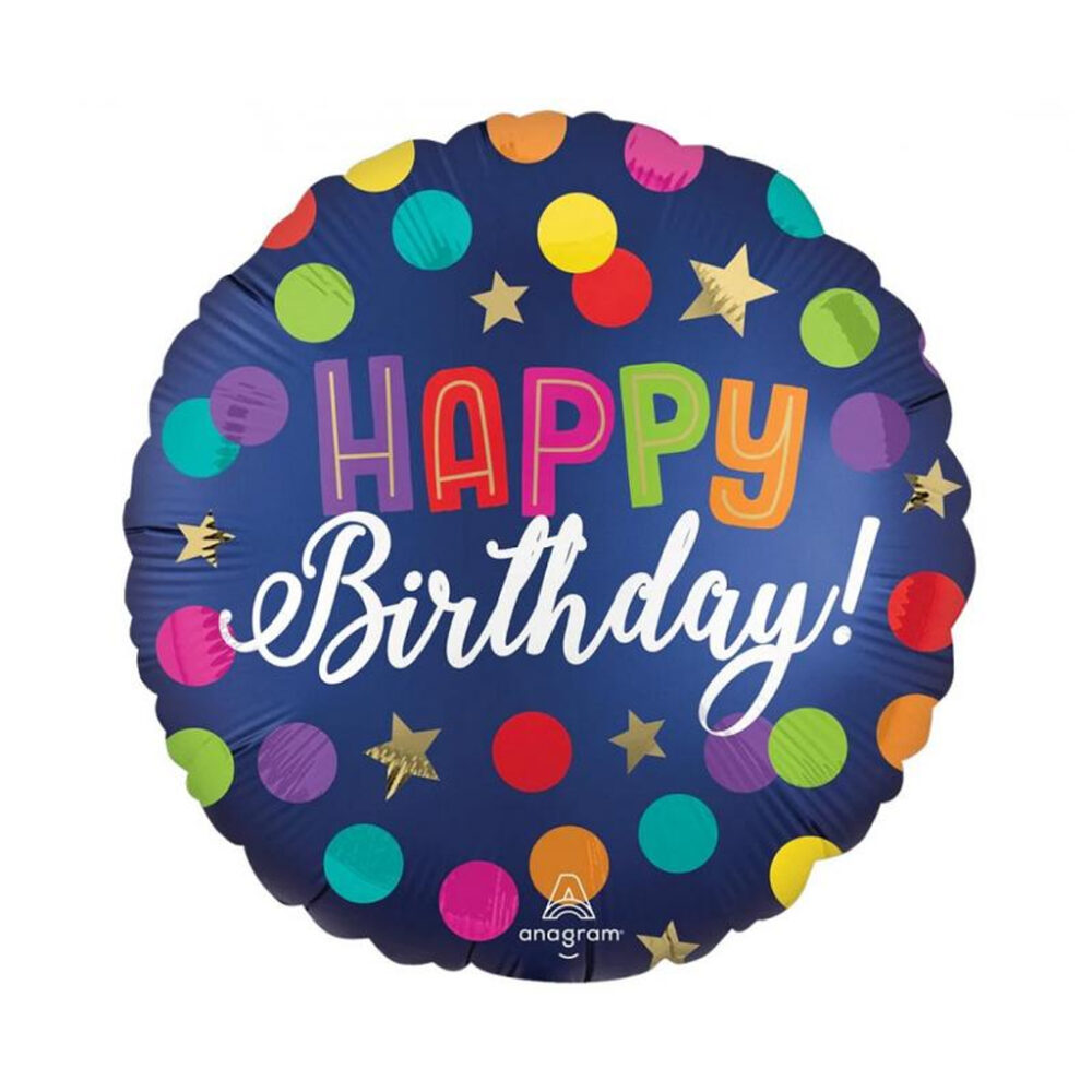 Balon z helem: Happy Birthday, gwiazdki, 18″