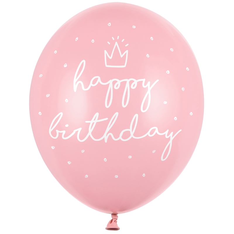 Balon z helem: Happy Birthday, P. Baby Pink, 30 cm
