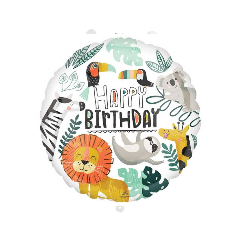 Balon z helem: Happy Birthday, zwierzaki, 18″