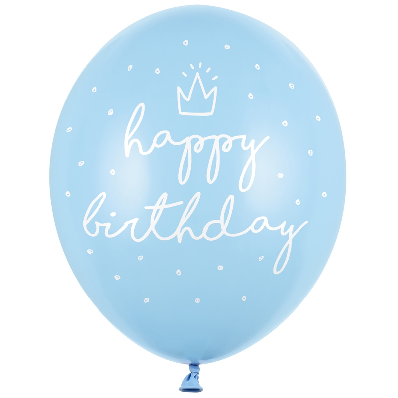 Balon bez helu: Happy Birthday, P. Baby Blue, 30cm