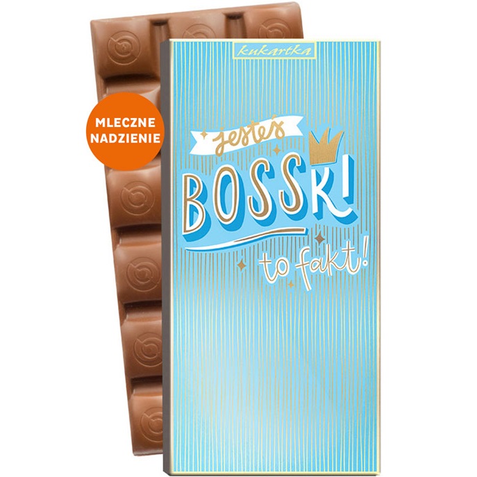 Czekolada mleczna „Jesteś bosski” to stylowy i smaczny upominek, który łączy delikatną polską czekoladę z kremowym mlecznym nadzieniem w pełnowymiarowej tabliczce 100 g. Umieszczona w eleganckim, prezentowym kartoniku, stanowi efektowny i zabawny sposób na wyrażenie uznania lub sprawienie radości bliskiej osobie. Produkt wyróżnia wysoka jakość wykonania i starannie dobrane składniki, a jego forma sprawia, że idealnie nadaje się na każdą okazję.
