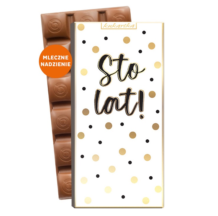 Czekolada z napisem “Sto lat” to popularny słodki upominek z okazji urodzin lub imienin. Produkt zawiera tabliczkę czekolady mlecznej, zamkniętej w opakowaniu z dużym, wyraźnym napisem życzącym długich lat życia. Jest to prosty i uniwersalny prezent, który sprawdzi się na każdej uroczystości okolicznościowej. Stanowi miły dodatek do kwiatów lub większego podarunku.