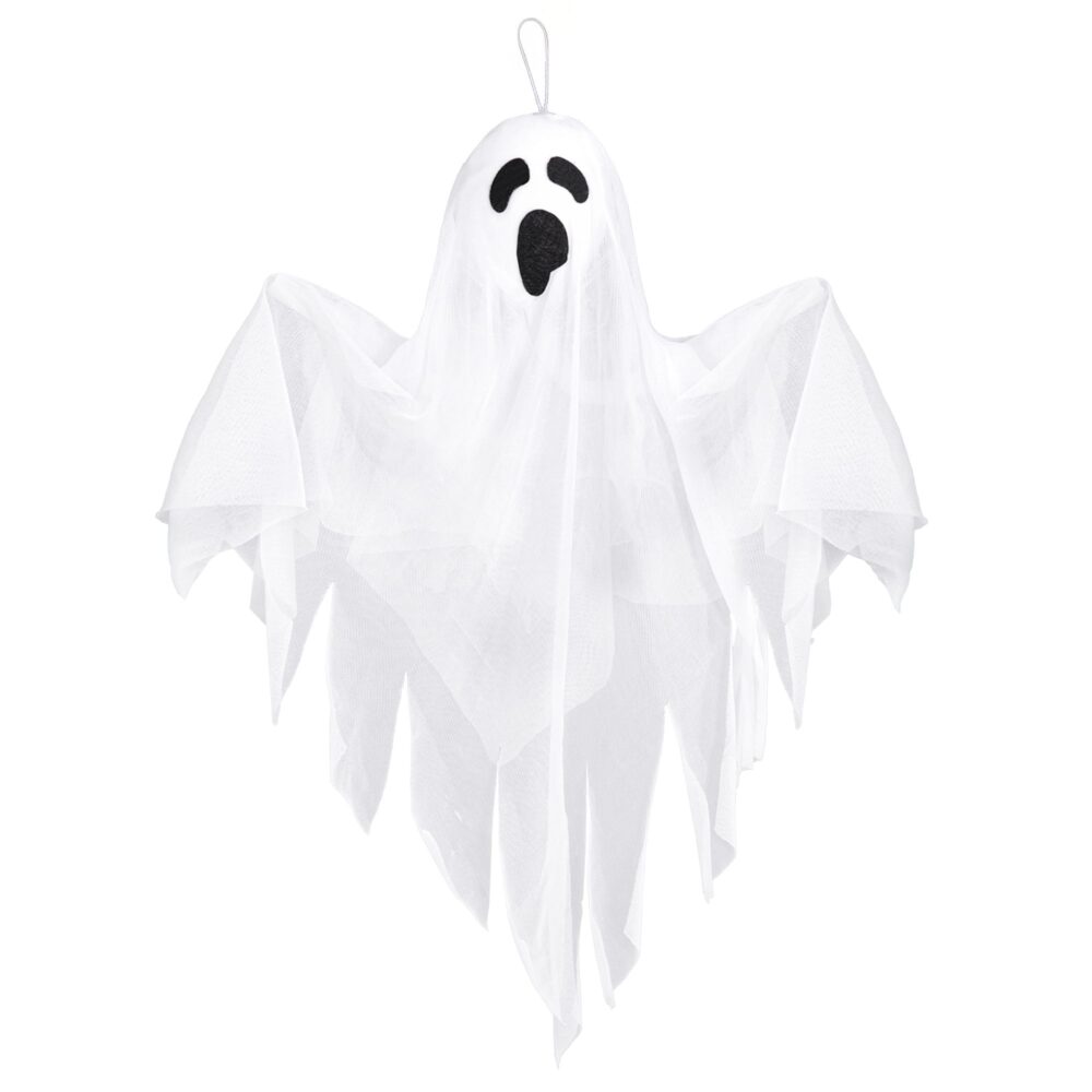 Wisząca dekoracja Halloween w postaci ducha to klasyczny element strasznej aranżacji wnętrza lub ogrodu. Lekka, poruszająca się na wietrze postać ducha wprowadzi klimatyczną atmosferę grozy. Idealna do zawieszenia przy wejściu, na suficie lub w oknie podczas halloweenowej zabawy