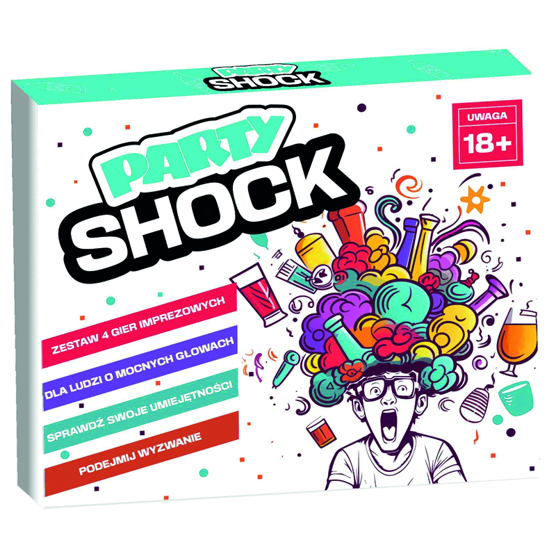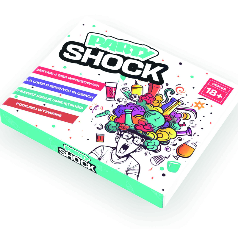 Idealny wieczór z przyjaciółmi = PARTY SHOCK = 1 pudełko = 4 gry imprezowe = świetny pomysł na prezent