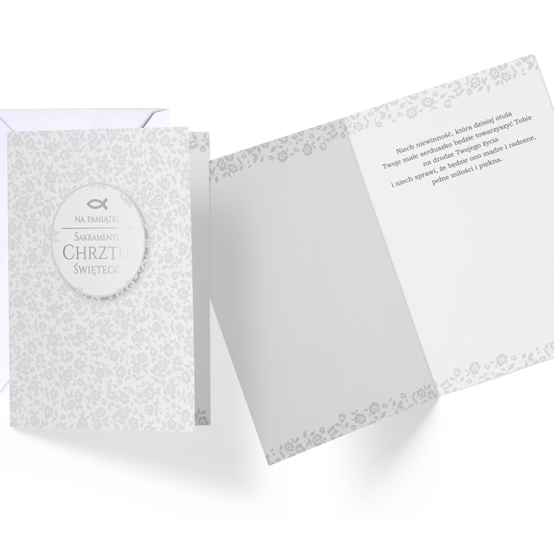 Kartka okolicznościowa – Chrzest, kwiatki srebrna