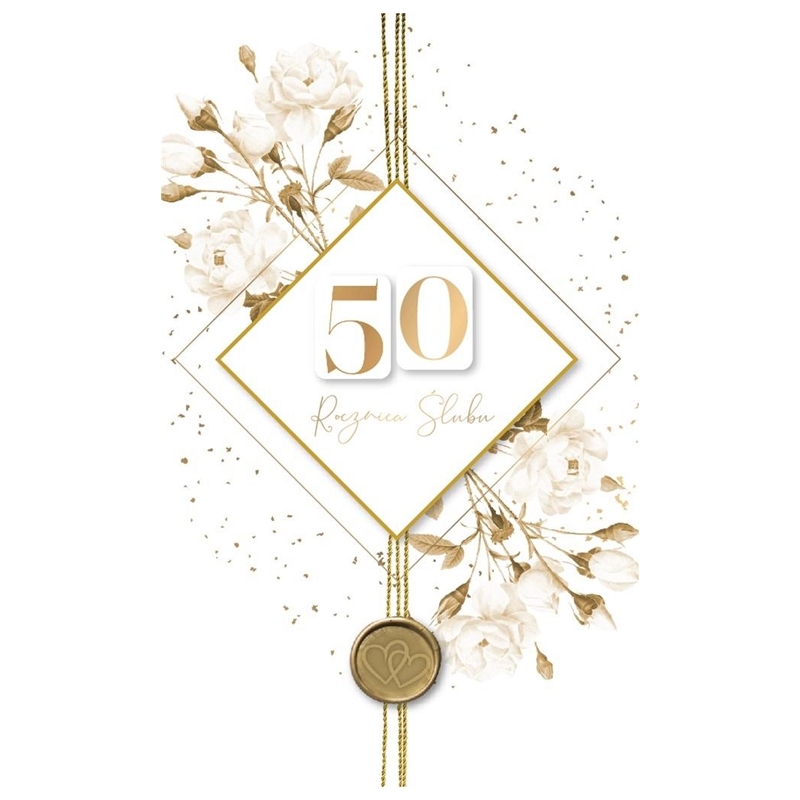 Karnet na rocznicę ślubu z wymiennymi cyferkami.
