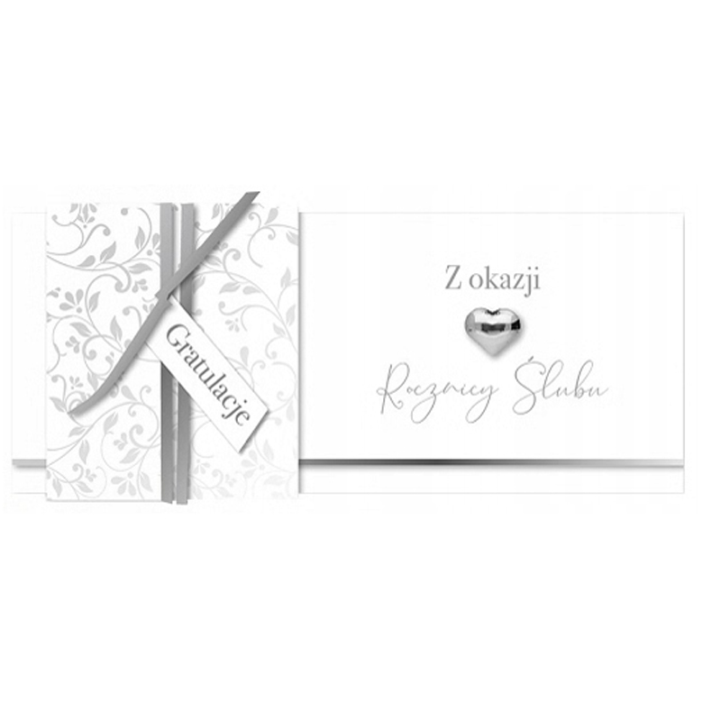 Kartka na rocznicę ślubu, srebrne napisy.
