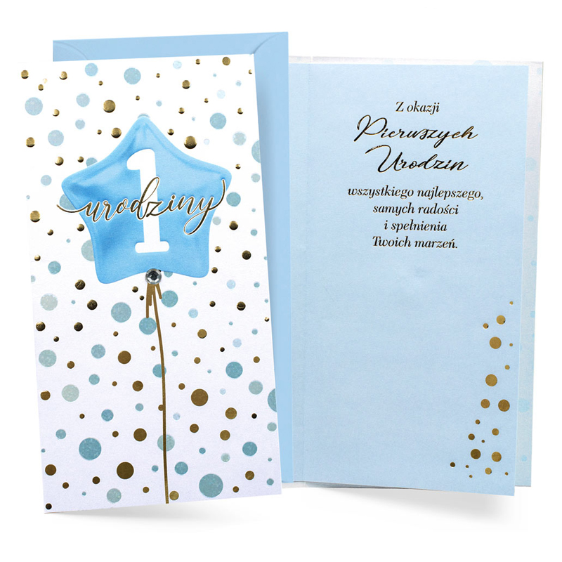 Kartka urodzinowa – 1 urodziny, niebieska