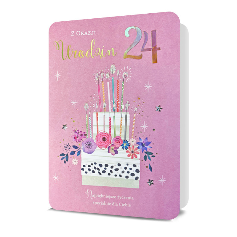 Kartka jest bogato i różnorodnie zdobiona (zależnie od wzoru: metaliczna folia, lakier perłowy,