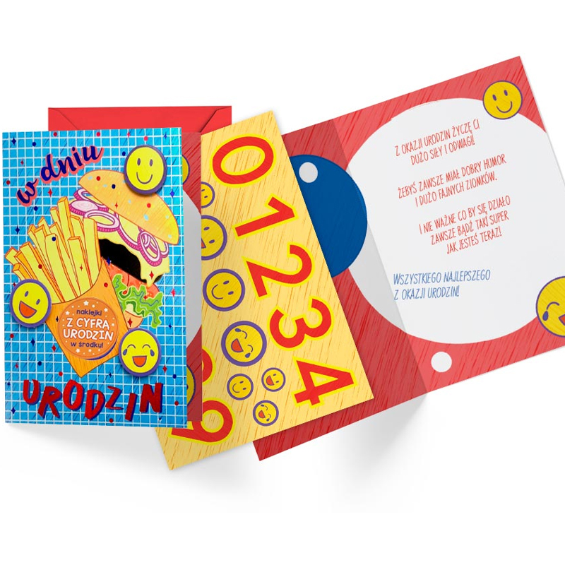 To idealny wybór łączący przyjazną cenę z jakością. Kartki z tej serii mają wyjątkowy dodatek – naklejki z cyferkami, z których można ułożyć dowolny wiek solenizanta.