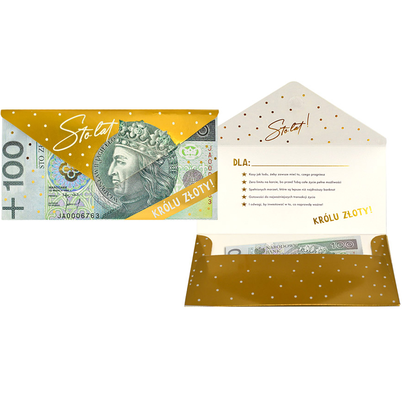 Koperta podarunkowa – Sto lat królu złoty, 100zł