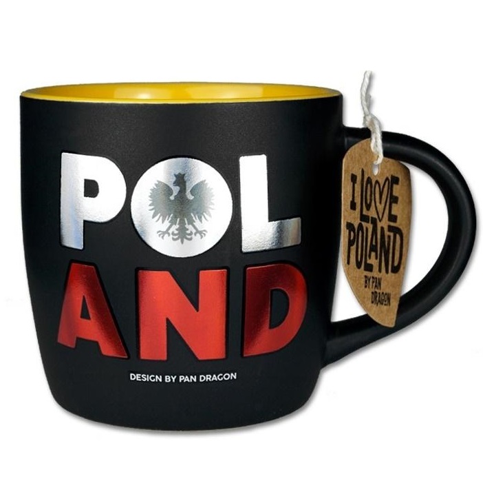 Kubek ceramiczny z motywem “Poland” w eleganckiej czarno-złotej kolorystyce to stylowy upominek i pamiątka związana z Polską. Kubek wykonany jest z trwałej ceramiki. Ma wyrazisty nadruk, który łączy czerń z luksusowym złotym akcentem oraz biało-czerwonym napisem. Jest to praktyczny i estetyczny gadżet. Kubek doskonale nadaje się jako prezent dla zagranicznych gości, pamiątka z podróży, lub dodatek dla patrioty.