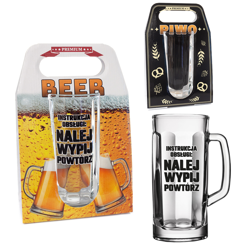 Kufel do piwa z napisem “Instrukcja Obsługi….” w ozdobnym opakowaniu. 500 ml