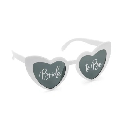 Stylowe okulary w kształcie serc to obowiązkowy gadżet na niezapomniany wieczór panieński. Białe oprawki z ciemnymi szkłami zostały ozdobione eleganckim, białym napisem Bride to Be, który od razu wyróżnia przyszłą pannę młodą z tłumu. Okulary nie tylko świetnie prezentują się jako element imprezowej stylizacji, ale stanowią również doskonały rekwizyt do zabawnych i klimatycznych zdjęć z przyjaciółkami. Lekka konstrukcja i modny kształt sprawiają, że są wygodne w noszeniu i dodają uroku każdej kreacji, podkreślając radosny i wyjątkowy charakter świętowania ostatnich chwil wolności.