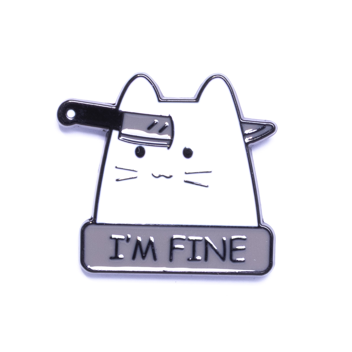 Pin Kot z nożem w głowie to niebanalna przypinka o humorystyczno-mrocznym charakterze. Przedstawia kotka z wbitym w głowę nożem, co nadaje jej groteskowego, ale jednocześnie zabawnego wyglądu. Doskonały gadżet dla osób z poczuciem czarnego humoru, fanów nietypowych i oryginalnych dodatków. Idealny, aby wyróżnić się i dodać odrobinę ironii do swojego stylu.