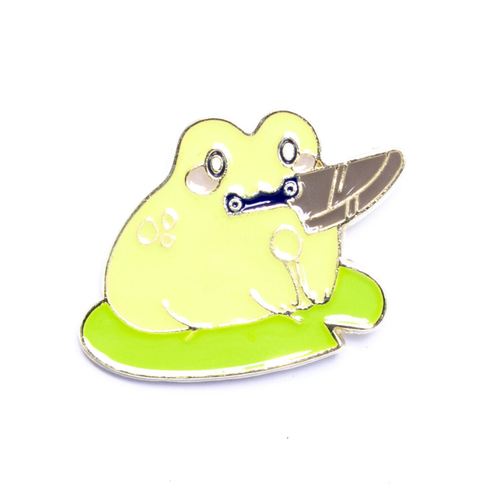 Pin Żaba z Nożem to zabawna i nieco mroczna przypinka przedstawiająca żabkę trzymającą nóż, łącząc uroczą postać ze zadziornym akcentem. Doskonale sprawdzi się na plecaku, torbie, kurtce czy czapce, dodając stylizacji nietypowego, humorystycznego i wyrazistego charakteru. To idealny gadżet dla osób, które lubią kreatywne, odważne i przyciągające uwagę dodatki.