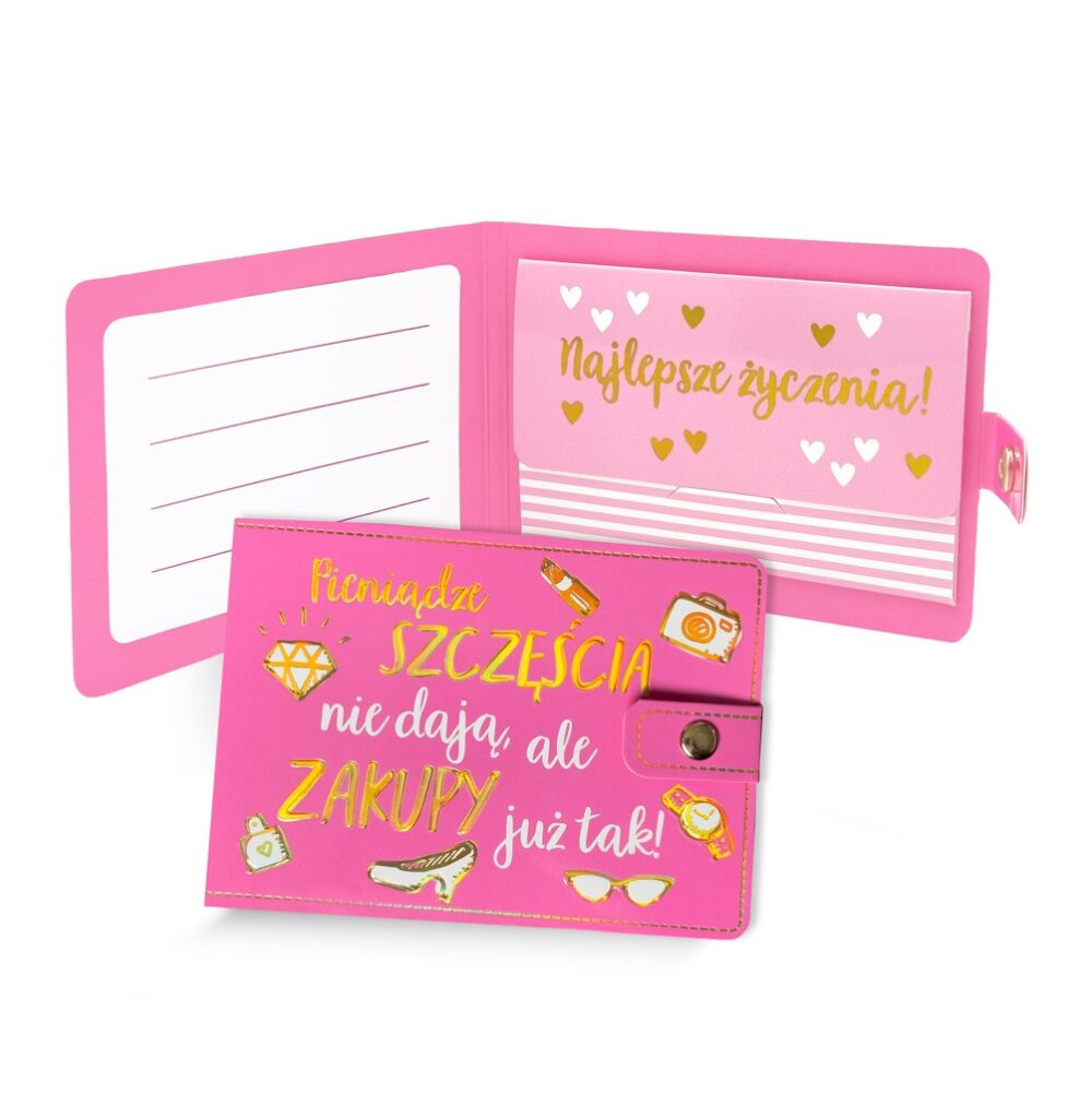 Portfelik prezentowy „Pieniądze szczęścia nie dają, ale zakupy już tak!” to zabawny i stylowy sposób na wręczenie gotówki w wyjątkowy sposób. Wewnątrz znajduje się miejsce na osobiste życzenia oraz kieszonka na pieniądze lub kartę podarunkową. Doskonały wybór dla miłośników zakupów i humorystycznych prezentów, sprawdzi się na każdą okazję.