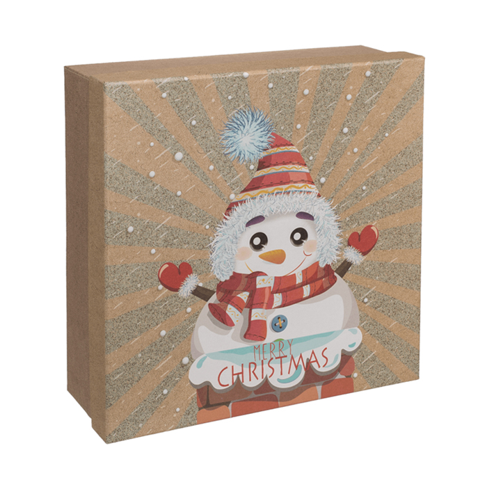 Pudełko prezentowe kwadratowe z nadrukiem Bałwanka.