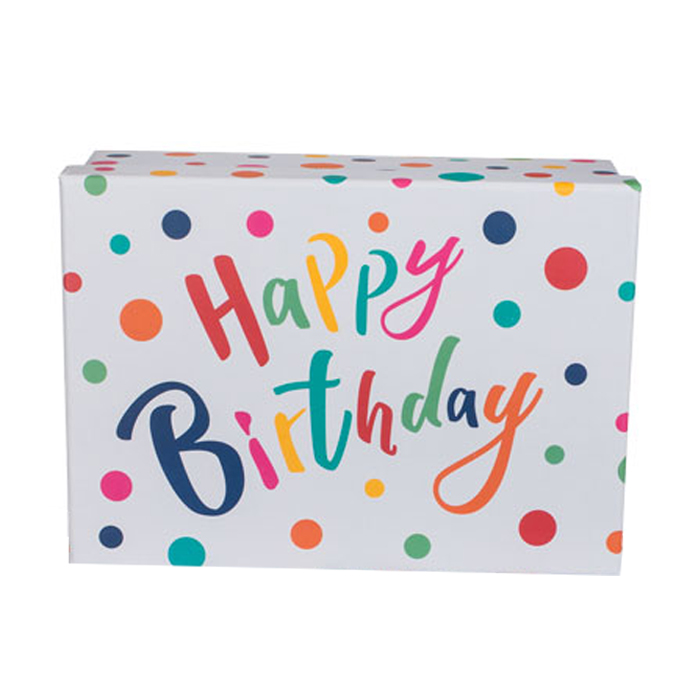 Pudełko prezentowe prostokątne z napisem Happy Birthday.