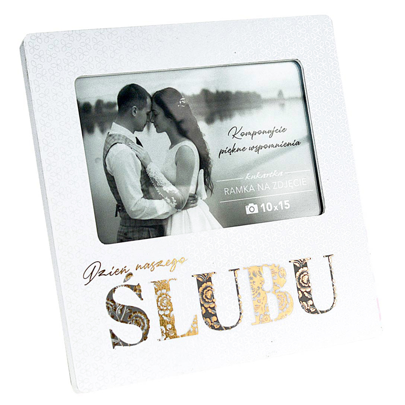Ramka do zdjęć z serii Moments to wspaniały, niezapomniany pomysł na ślub. Wykonana z solidnej płyty MDF w drewnopodobnej okleinie ramka ma lustrzany napis i grawerowaną sentencję. Na tylnej ściance ramki jest haczyk do zawieszenia na ścianie i nóżka do postawienia.