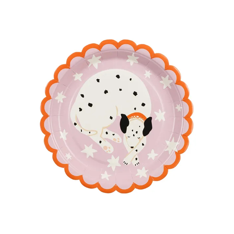 Talerzyki papierowe z Dalmatyńczykiem, mix kolorów, wymiary ok. 18 x 18 cm.