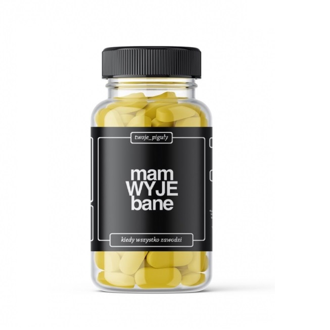 Twoje Piguły – Mam wyjebane. Opakowanie przypominające butelkę z tabletkami, w środku znajdują się cukierki typu “Tic Tac”. Idealny upominek na każdą okazję, który zaskoczy i rozbawi obdarowanego.