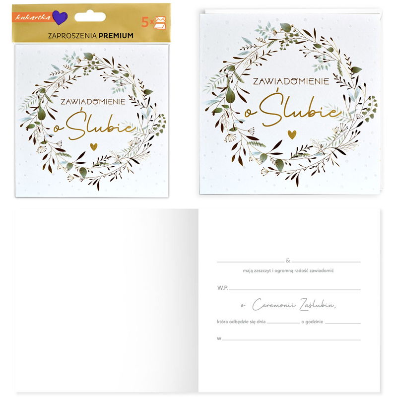 Zawiadomienie z serii Passion Moments to idealne połączenie stylu i przystępnej ceny. Zawiadomienia na satynowym, śnieżnobiałym papierze, a każde posiada przynajmniej dwa uszlachetnienia: złocenie lub srebrzenie, elementy z perłowej lub holograficznej folii itp. W opakowaniu znajduje się 5 zaproszeń i 5 dopasowanych do nich kopert.