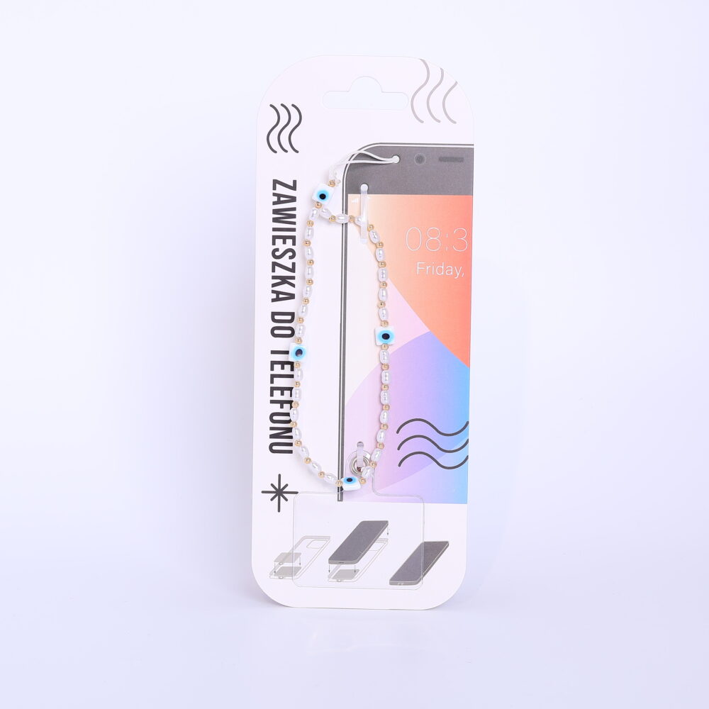Elegancka zawieszka do telefonu to stylowy i praktyczny dodatek, który pozwoli Ci spersonalizować Twojego smartfona. Akcesorium zostało wykonane z subtelnych, białych koralików przypominających perły, przeplatanych złotymi akcentami. Wyjątkowego charakteru nadają mu detale z motywem „oka proroka”, które wprowadzają modny, orientalny akcent do codziennego designu. Zawieszka jest łatwa w montażu i pasuje do większości etui, stanowiąc nie tylko ozdobę, ale także dodatkowe zabezpieczenie przed przypadkowym wysunięciem się telefonu z dłoni. To idealne połączenie funkcjonalności z biżuteryjnym wykończeniem, które świetnie dopełni każdą stylizację.