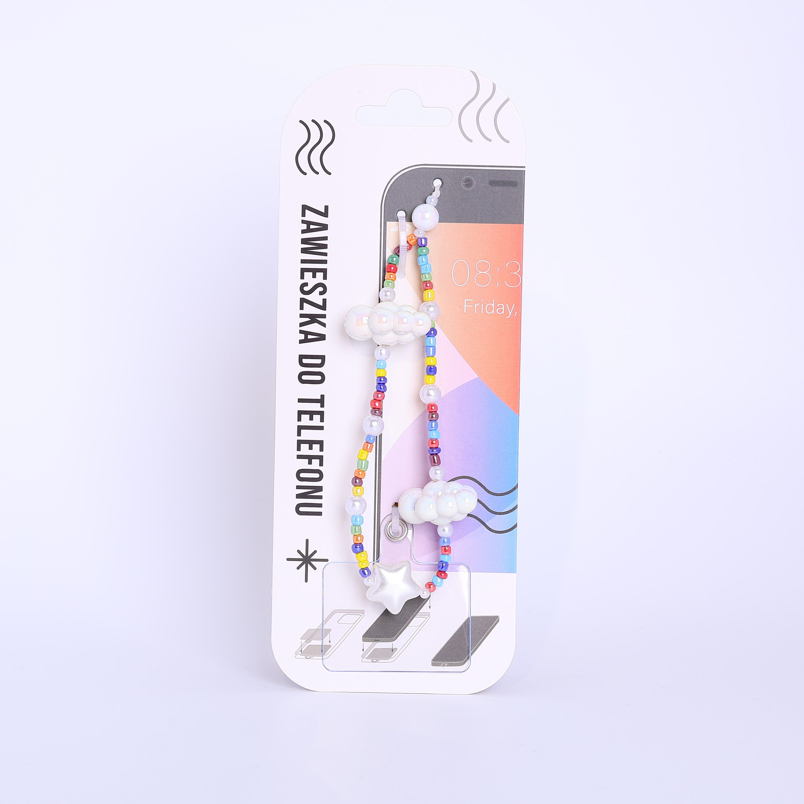 Tęczowa zawieszka do telefonu to uroczy dodatek, który wniesie mnóstwo kolorów i pozytywnej energii do Twojego codziennego zestawu. Akcesorium zostało wykonane z drobnych, wielobarwnych koralików, które przeplatają się z białymi perłami oraz większymi elementami w kształcie puszystych, opalizujących chmurek i gwiazdki. Zawieszka nie tylko pięknie zdobi smartfona, ale pełni również praktyczną funkcję, służąc jako wygodny uchwyt na nadgarstek, który chroni telefon przed upadkiem. Dzięki łatwemu montażowi pasuje do większości modeli etui, stanowiąc idealny gadżet dla osób ceniących radosny, marzycielski styl i unikalne detale.