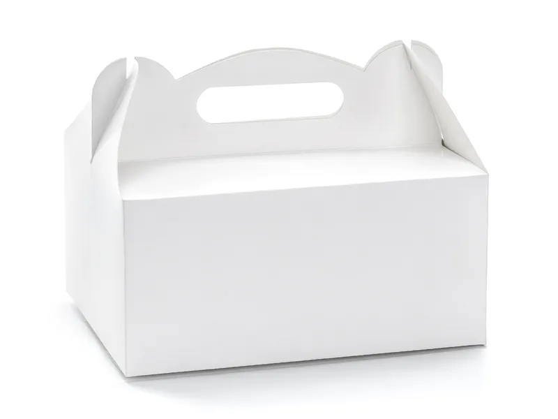 Ozdobne pudełka na ciasto z papieru w kolorze białym, set zawiera 10 sztuk, wymiary pudełka po złożeniu ok. 19x14x9 cm.